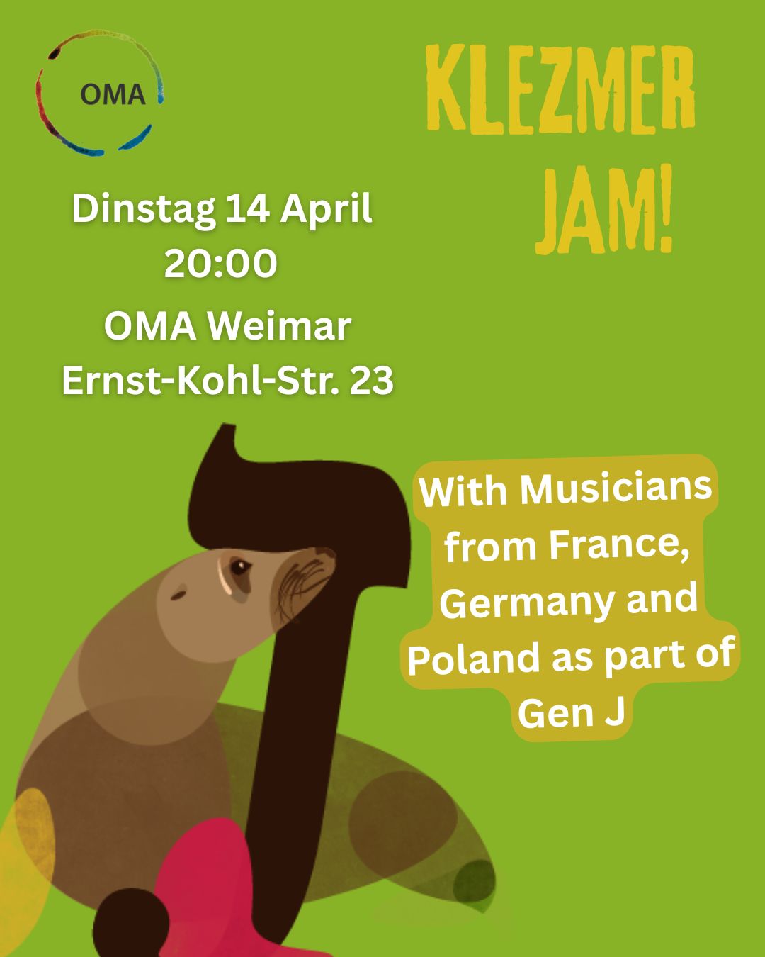 Alle Instrumente und Spielniveaus sind willkommen! Egal, ob Du Anfänger*in oder Profi bist, ob Du Klezmer-Neuling bist oder schon seit Jahren spielst – bring Dein Instrument mit und mach mit bei unserer Jam-Session! Ihr dürft Euch darauf freuen, in der entspannten und gemütlichen Atmosphäre des OMA Cafés gemeinsam Musik zu machen!
